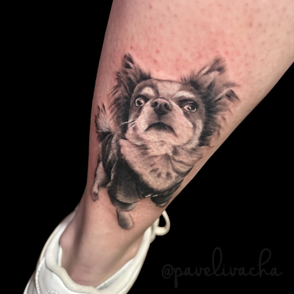 Tetování zvíře, pes na lýtku