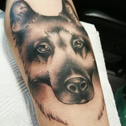 Tetování zvíře, pes na lýtku