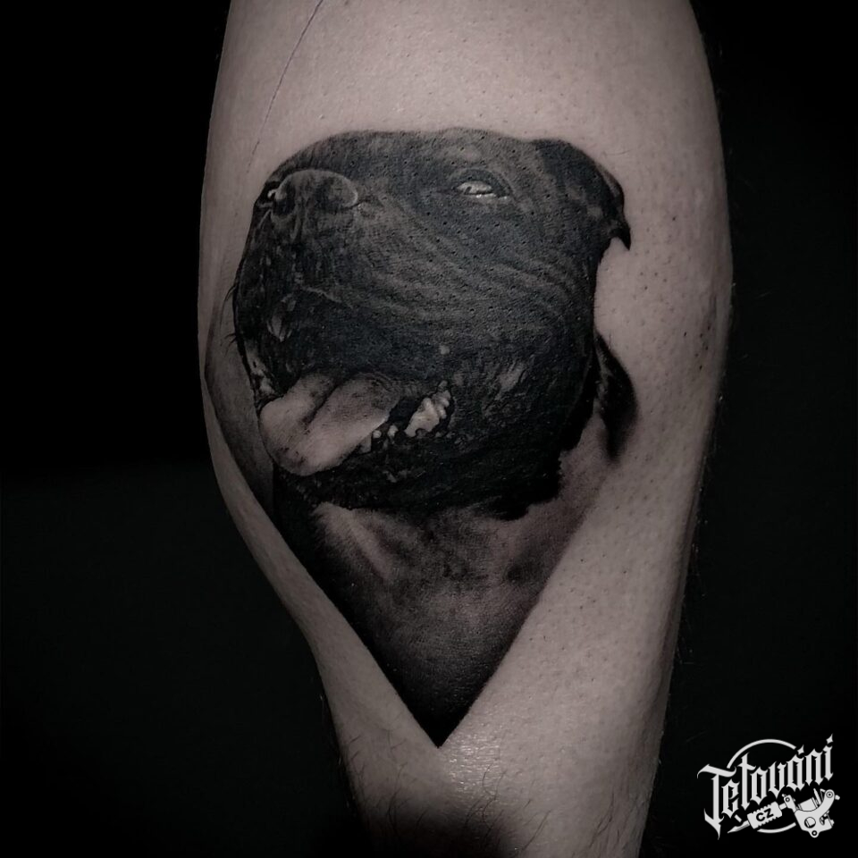 Tetování zvíře, pes na lýtku