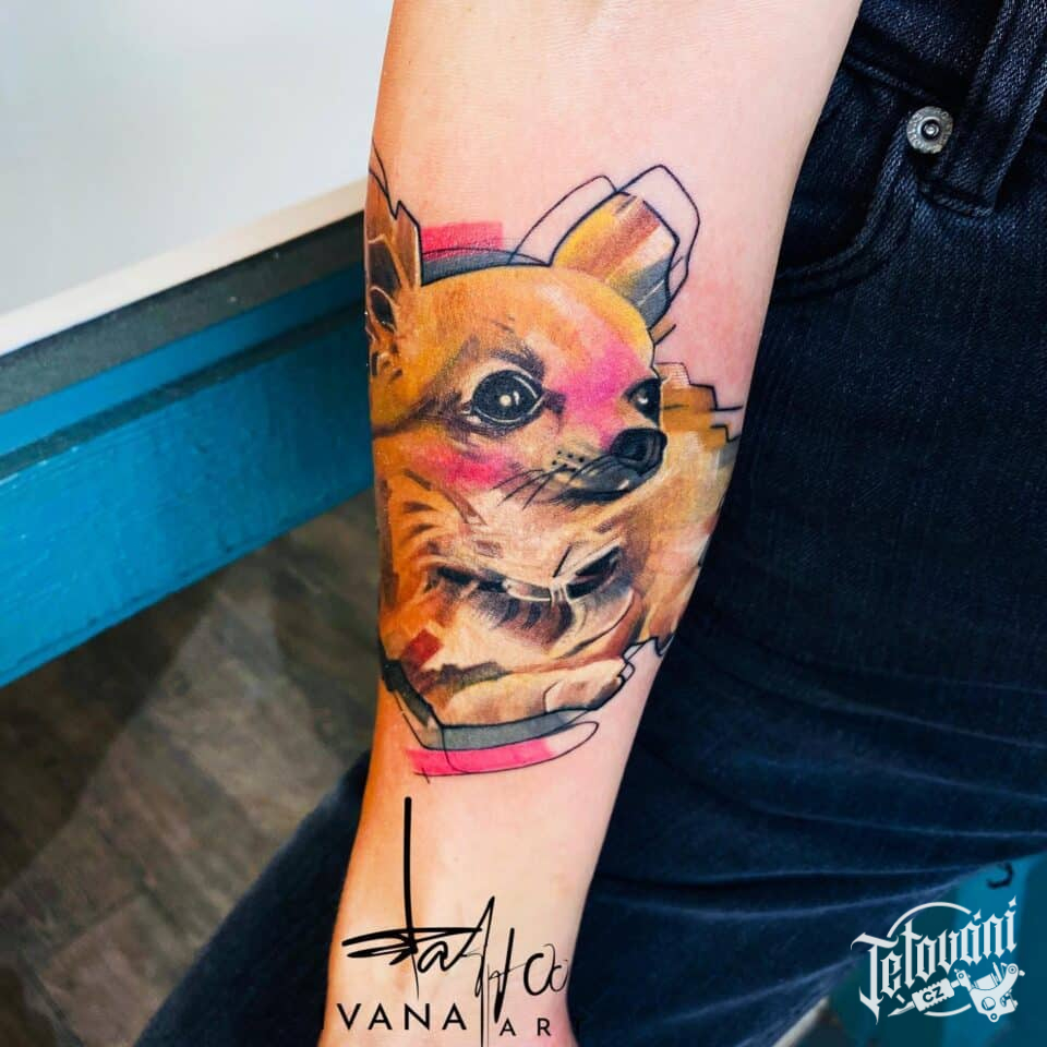 Tetování zvíře, pes na předloktí