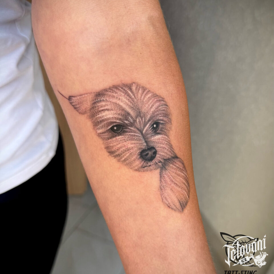 Tetování zvíře pes na předloktí