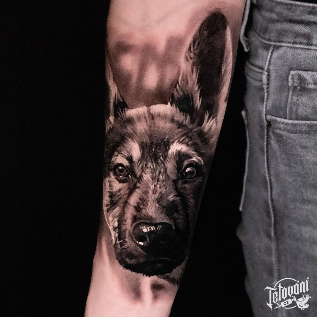 Tetování zvíře, pes na předloktí