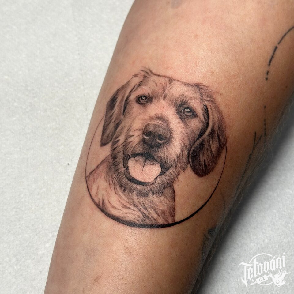 Tetování zvíře pes na předloktí