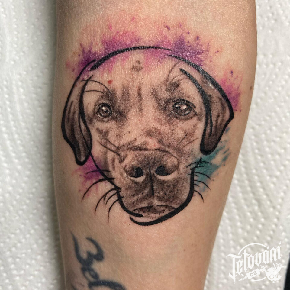 Tetování zvíře pes na předloktí