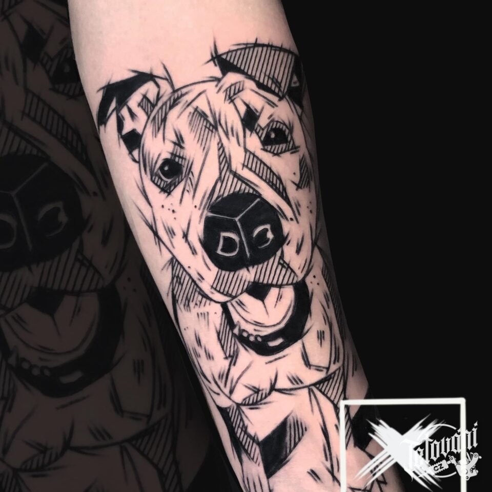 Tetování zvíře, pes na předloktí