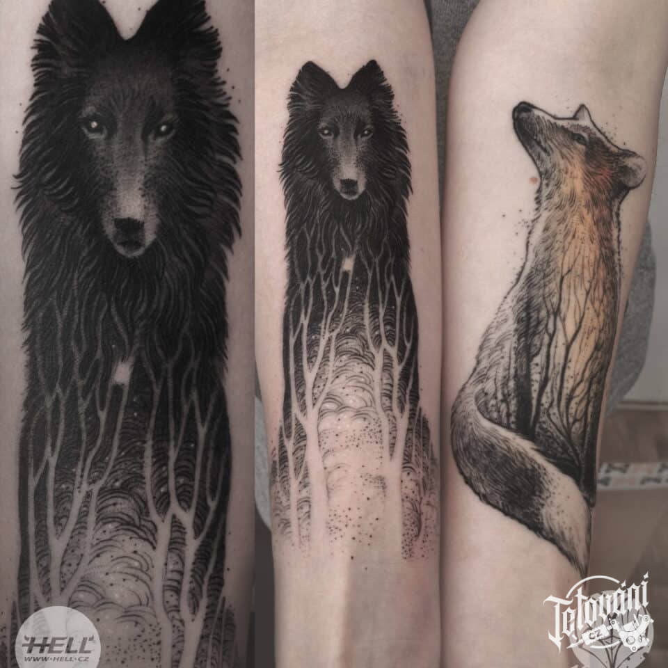 Tetování zvíře pes na předloktí