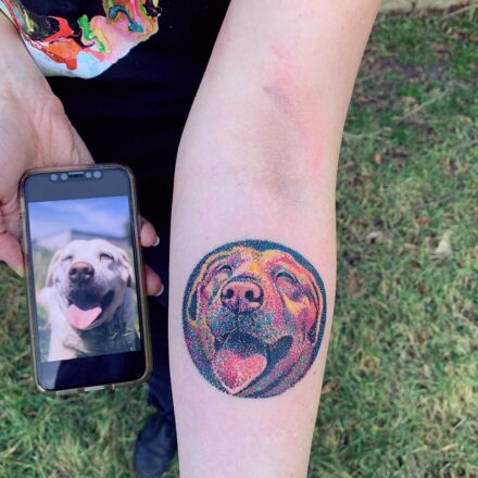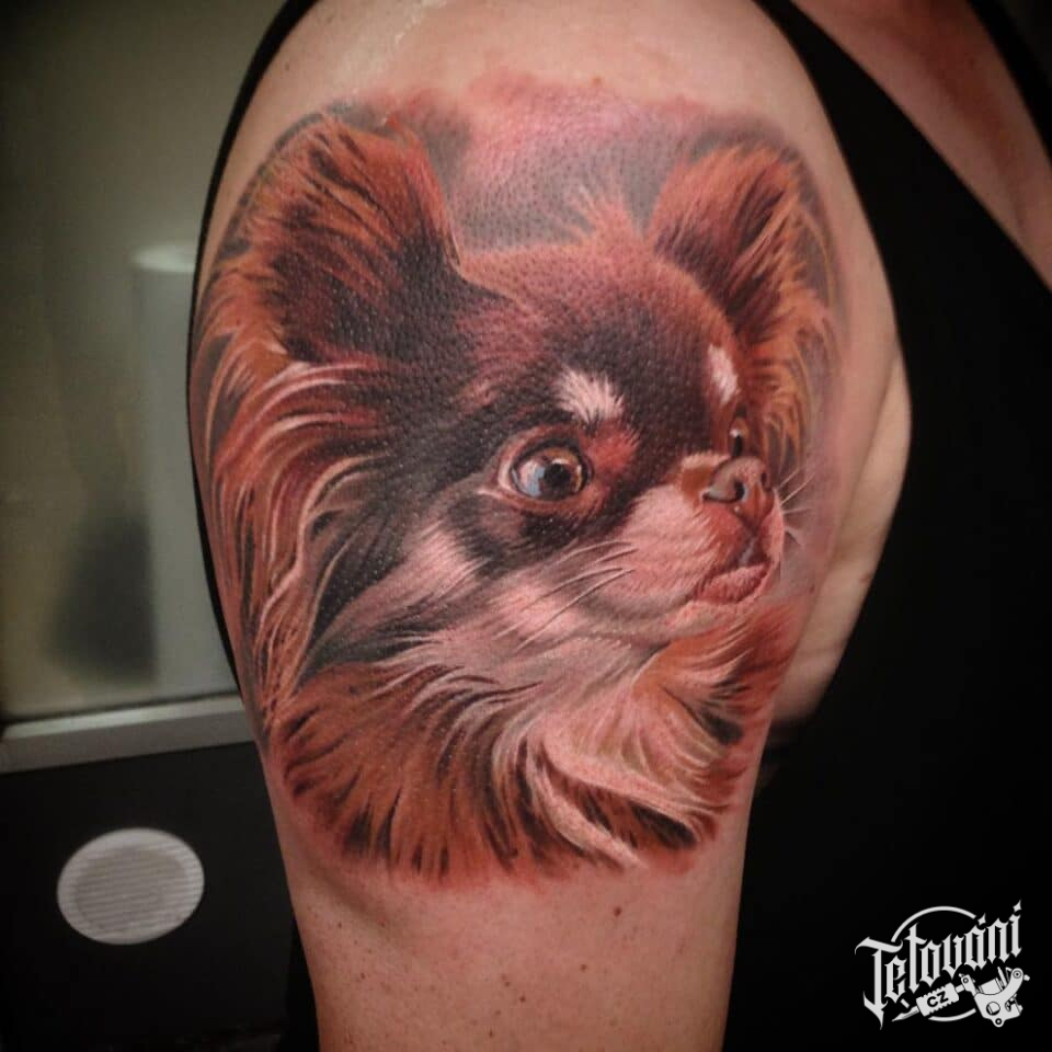 Tetování zvíře, pes na rameni