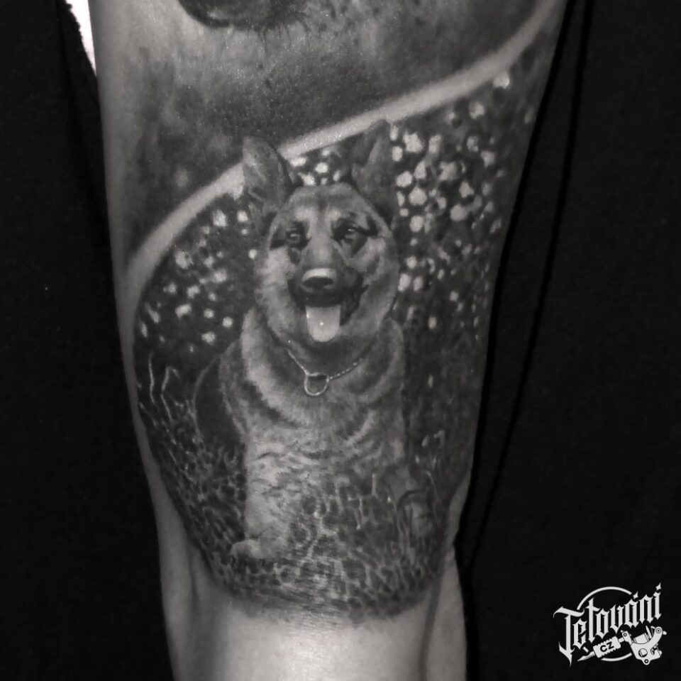 Tetování zvíře pes na rameno