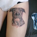 Tetování zvíře, pes na stehně