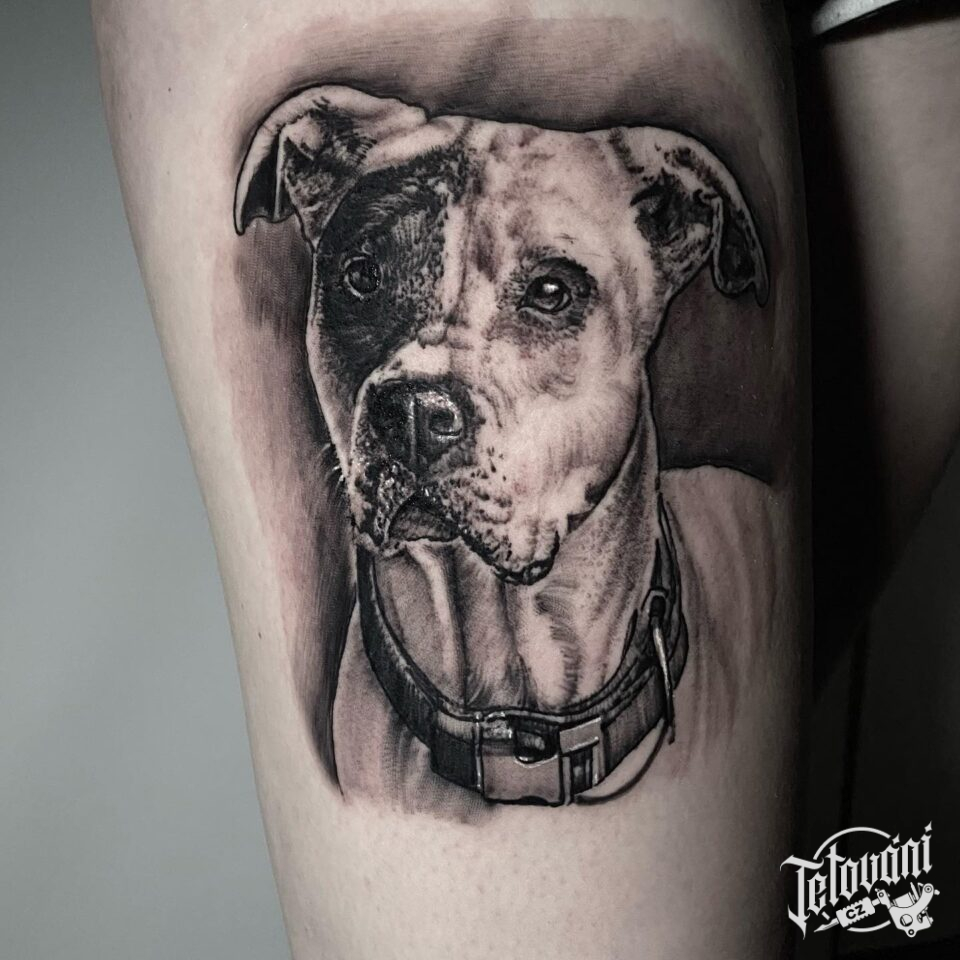 Tetování zvíře, pes na stehně