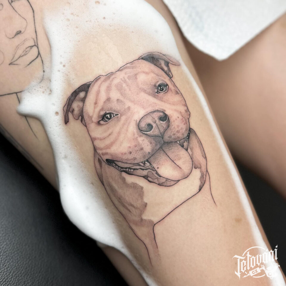 Tetování zvíře pes na stehno