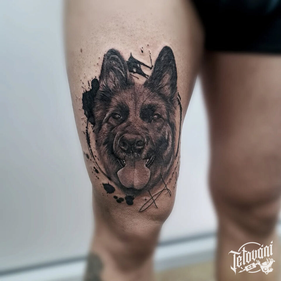 Tetování zvíře pes na stehno