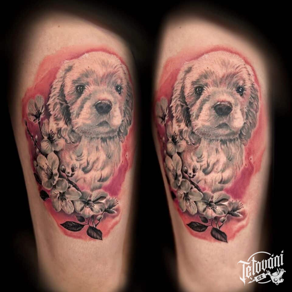 Tetování zvíře pes na stehno