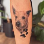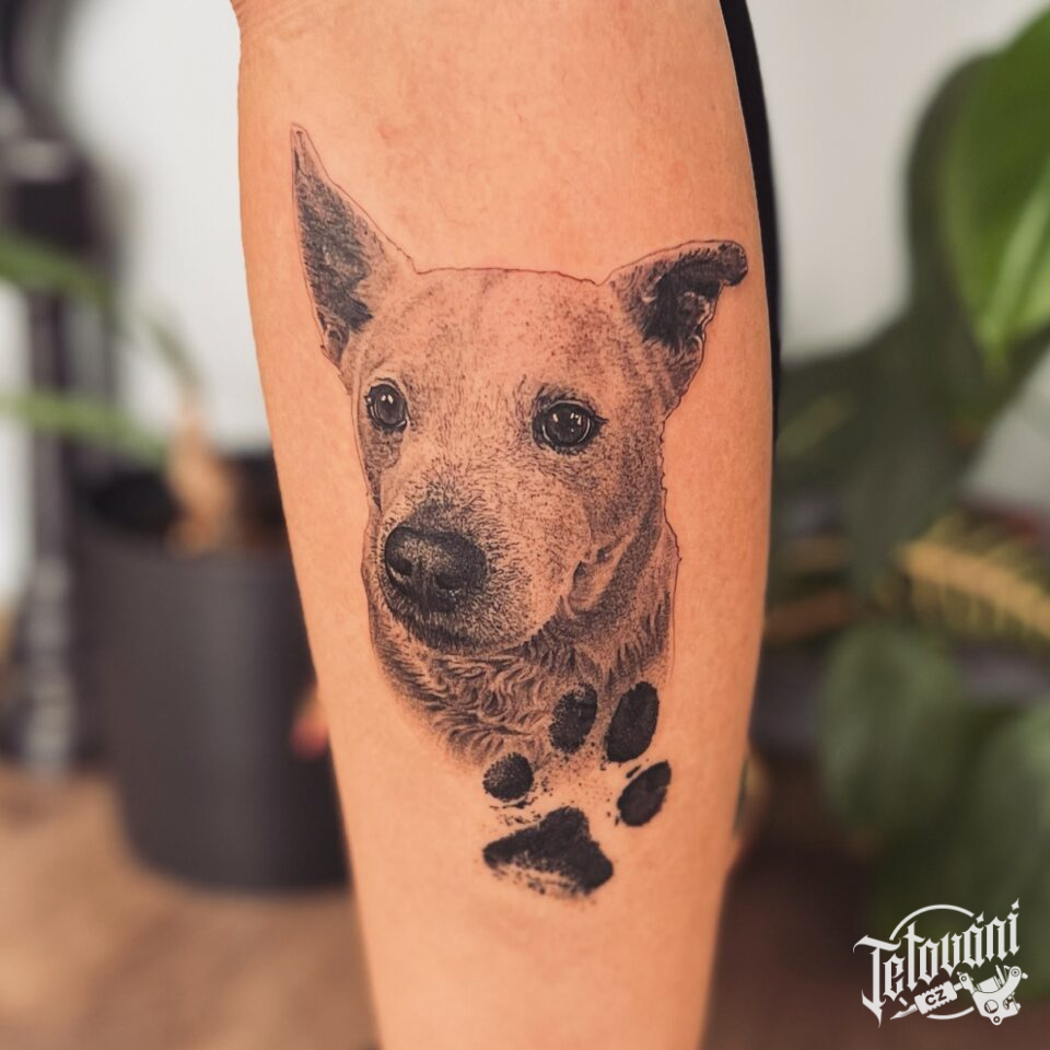 Tetování zvíře, pes s psí tlapkou na předloktí
