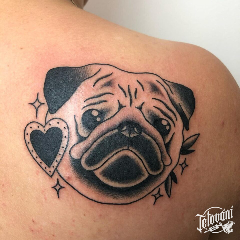 Tetování zvíře, pes, srdce na lopatku