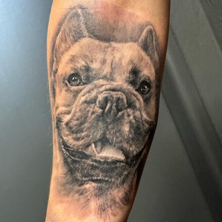 Tetování zvíře pes Staford na předloktí