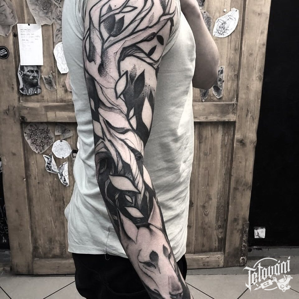 Tetování zvíře, pes, strom, rukáv