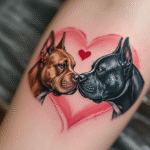 Tetování zvíře pes, zamilovaní staffbulové na předloktí