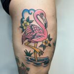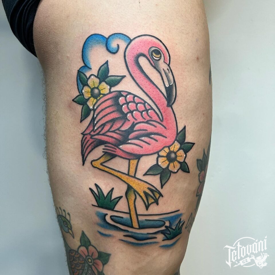 Tetování zvíře plameňák na bok stehna