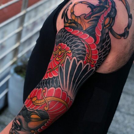 Tetování zvíře, portrét a had na paži