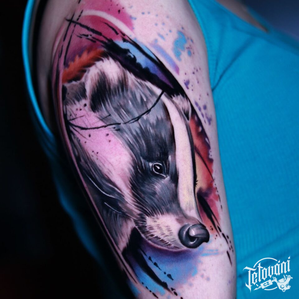 Tetování zvíře, portrét, čáry na rameno