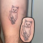 Tetování zvíře, postavička kočky s nápisem na stehně