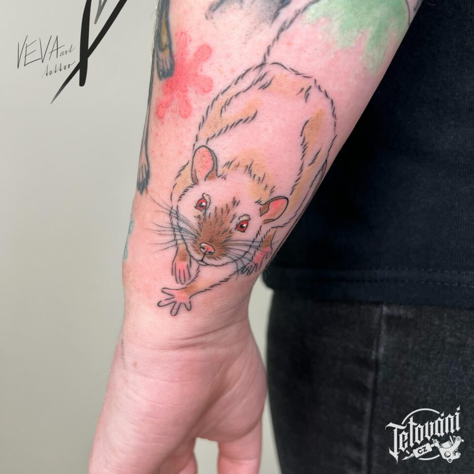 Tetování zvíře potkan na předloktí