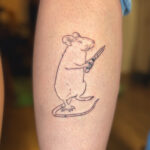 Tetování zvíře, potkan s nožem na lýtku