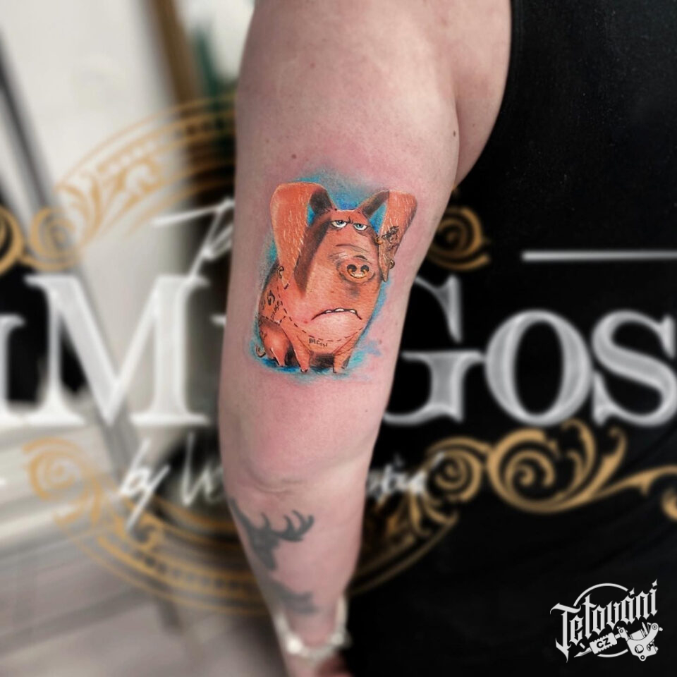 Tetování zvíře, prase z filmů a pohádek na ruce