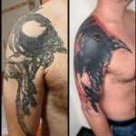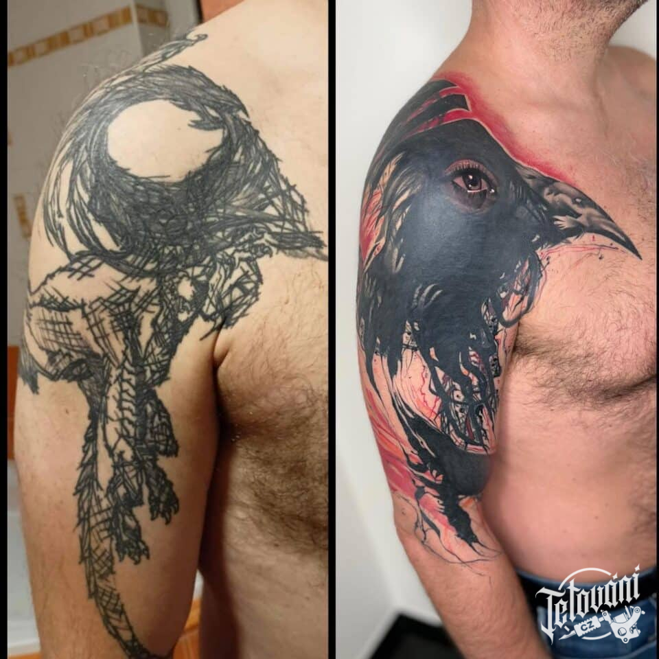 Tetování zvíře, pták a oko na rameni