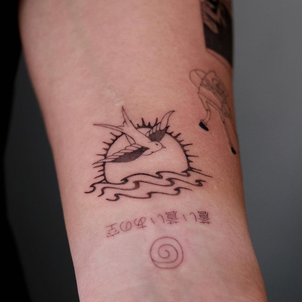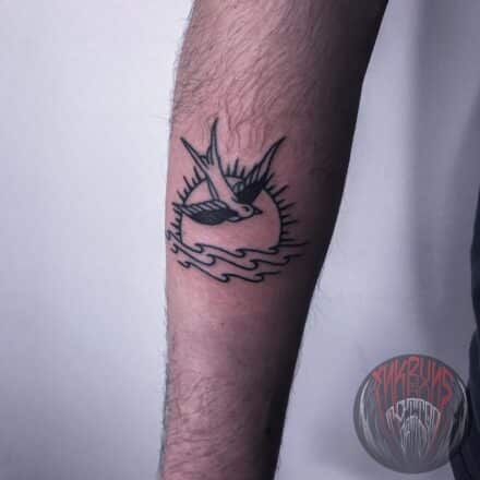 Tetování zvíře pták a Slunce na předloktí