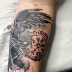 Tetování zvíře, pták, havran a runa ochranné symboly na předloktí