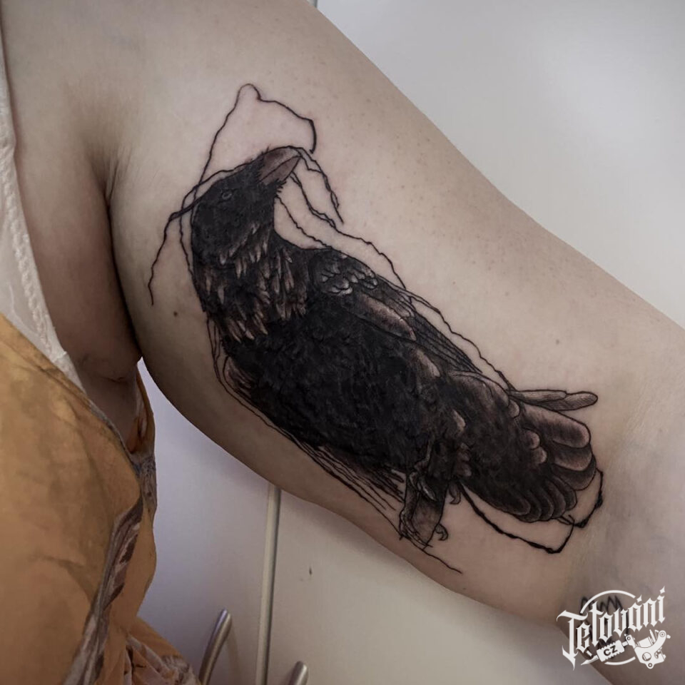 Tetování zvíře, pták, havran na paži