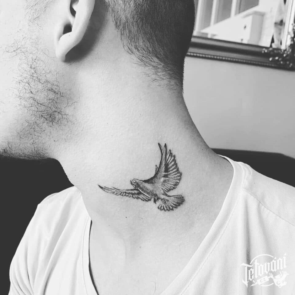 Tetování zvíře, pták, holubice na krku
