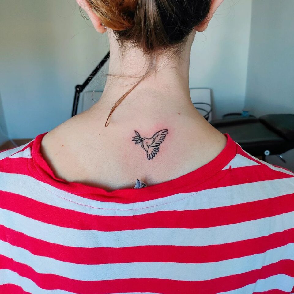Tetování zvíře, pták hrdlička na zádech