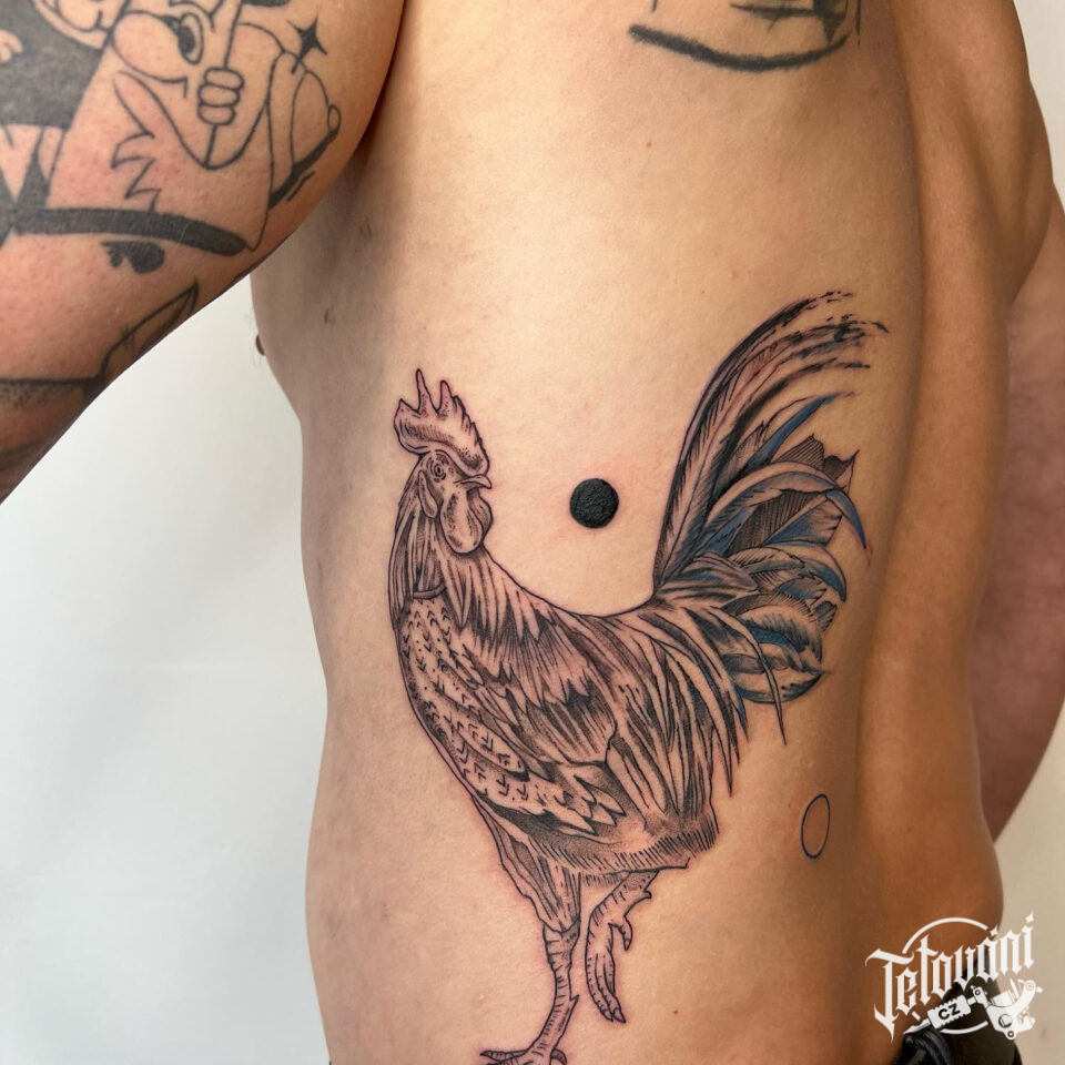 Tetování zvíře, pták, kohout na boku