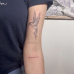 Tetování zvíře, pták, kolibřík, čísla, nápisy na ruce