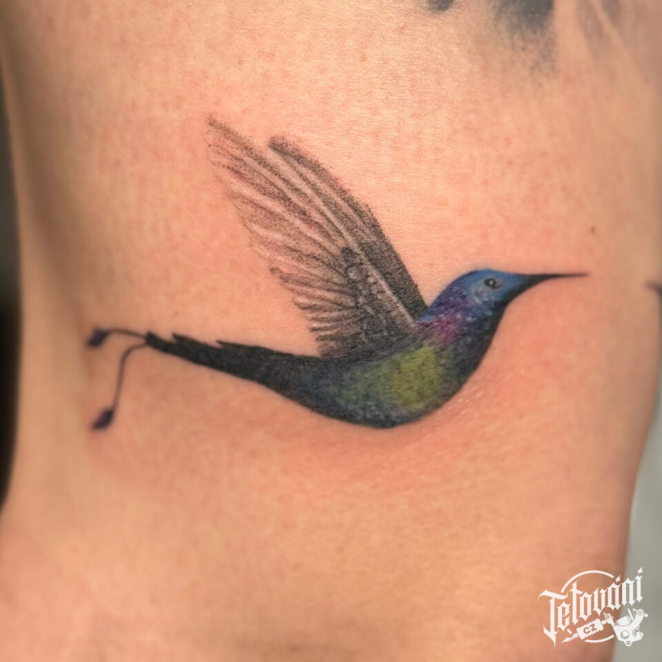 Tetování zvíře, pták, kolibřík na žebrech