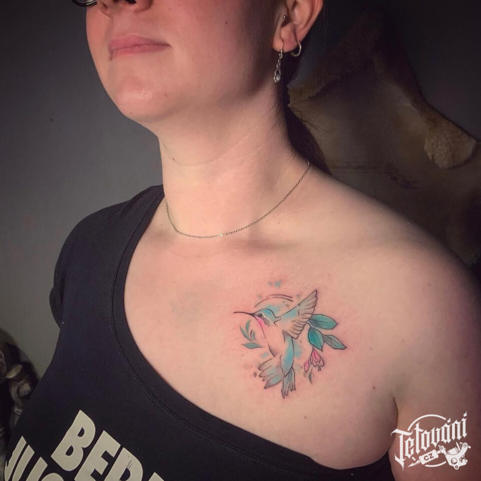 Tetování zvíře, pták, kolibřík pod klíční kostí