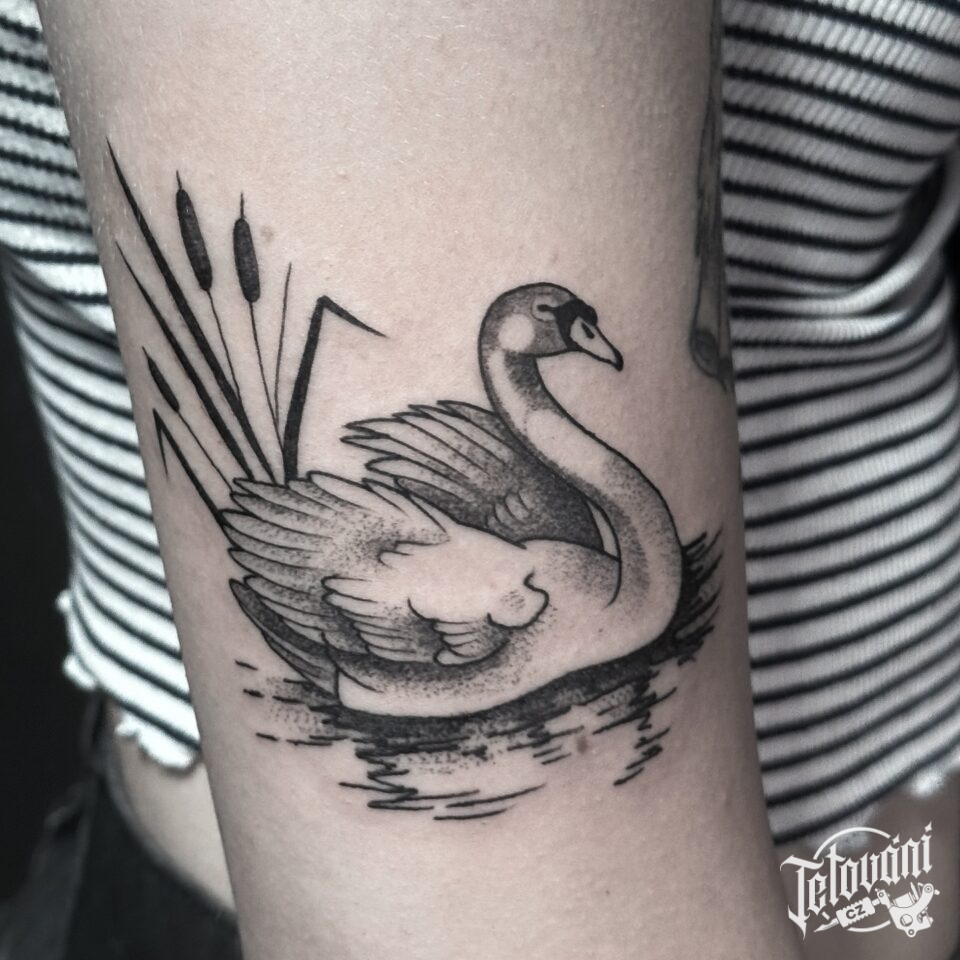 Tetování zvíře, pták, labuť na paži