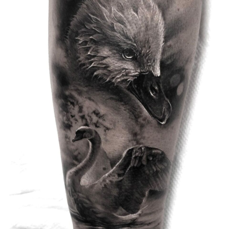Tetování zvíře pták, labuť, portrét, symbol života na lýtko