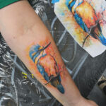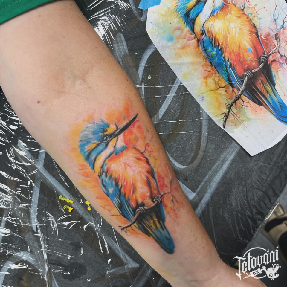 Tetování zvíře, pták, ledňáček na předloktí