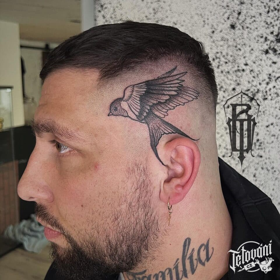 Tetování zvíře, pták na hlavě