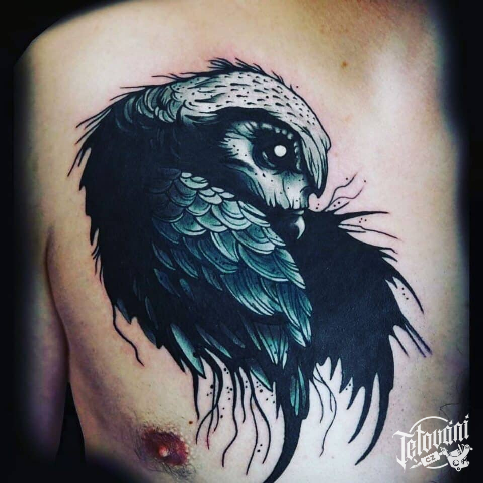 Tetování zvíře, pták na hrudi