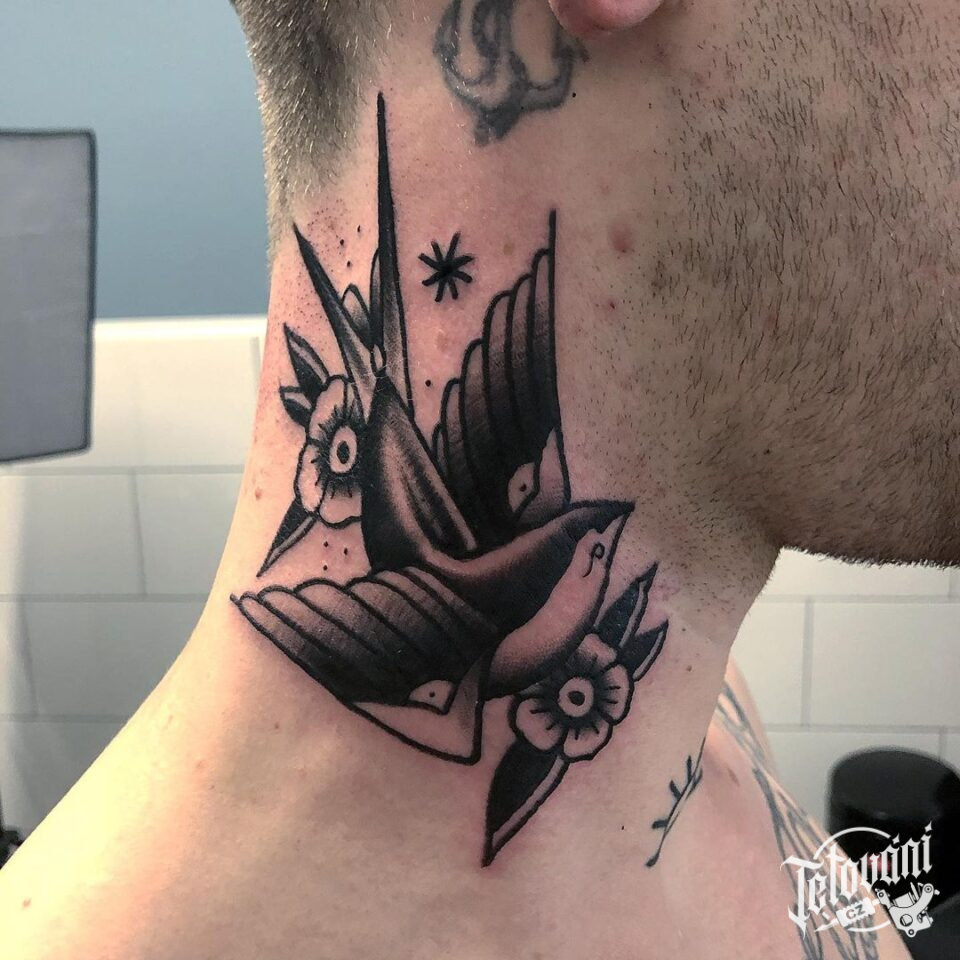 Tetování zvíře, pták na krku