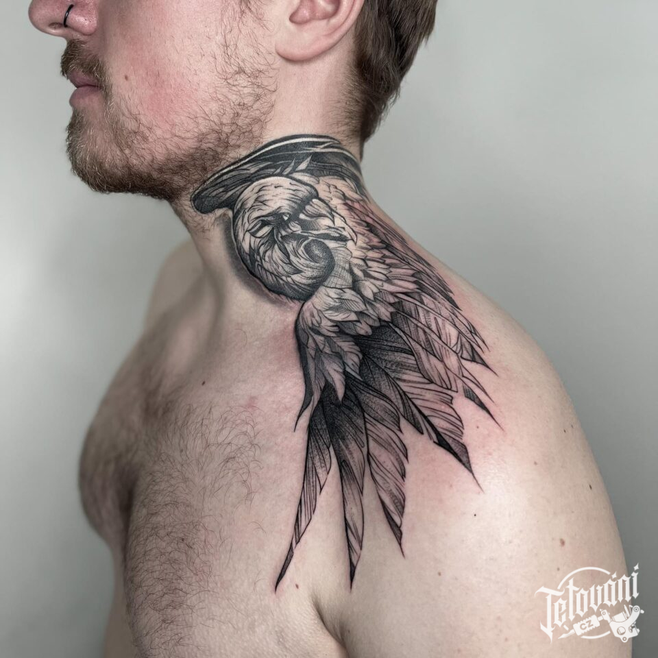 Tetování zvíře, pták na krku