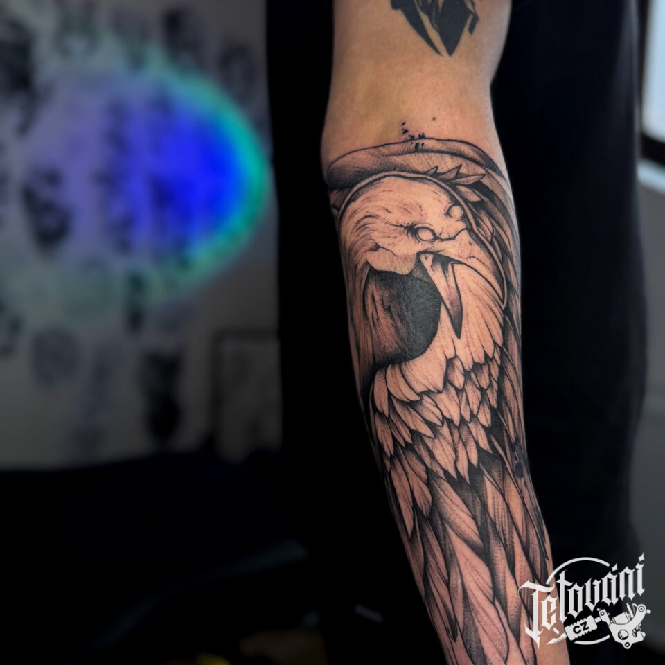 Tetování zvíře, pták na předloktí
