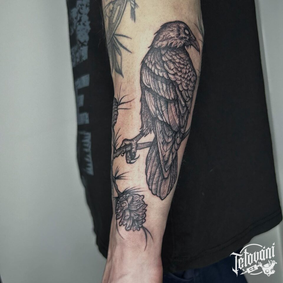Tetování zvíře, pták na předloktí