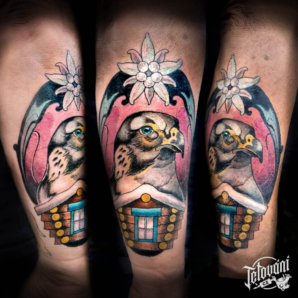 Tetování zvíře, pták na předloktí