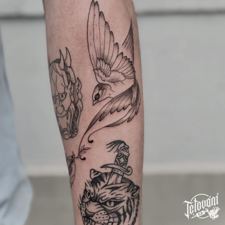 Tetování zvíře, pták na předloktí